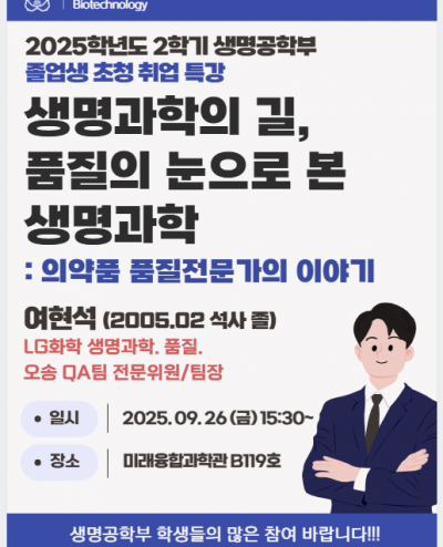 [진학설명회/캡스톤] 졸업생 초청 취업 특강: 여현석(LG화학 생명과학. 품질. 오송 QA팀 전문위원/팀장)