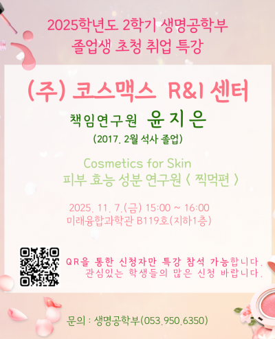 [진학설명회] 졸업생 초청 취업 특강: 윤지은((주) 코스맥스 R&I 센터 책임연구원)